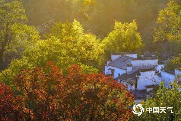 南方红叶的最佳观赏期较北方晚一些,要等到11月才能陆续开启。安徽黄山塔川国家森林公园的红叶景观极具江南特色,每年秋季,乌桕和红枫树会为徽派民居的水墨画添彩。乌桕是我国特有的树种,树叶似心形,与黄栌叶片相比略有棱角,还带个小尖尖,十分灵动可爱。由于今年持续的高温天气,红叶变色速度较往年明显放缓,不过近期随着气温下降,秋色开始显现,11月上中旬前后这里的红叶也将进入最佳观赏期。